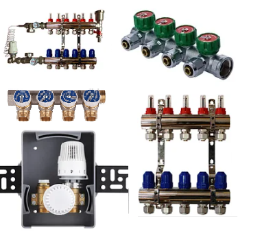 В комплектацию коллектор для теплого пола входит:- коллектор с регулировочными и запорными вентилями ручными/терморегулирующими