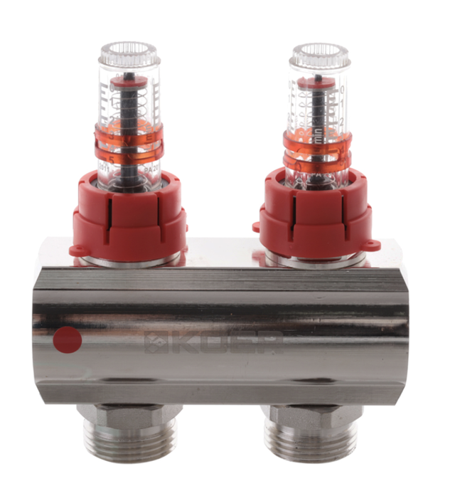 - Колектор для теплої підлоги Чеської фірми. Колектор є латунні нікельовані балки. Колектор, що подає (верхній), укомплектований витратомірами напору теплоносія, для зручного та наочного балансування контурів теплої підлоги. Всі витратоміри виконані в розбірному вигляді, що дає можливість легко зробити профілактичні роботи.